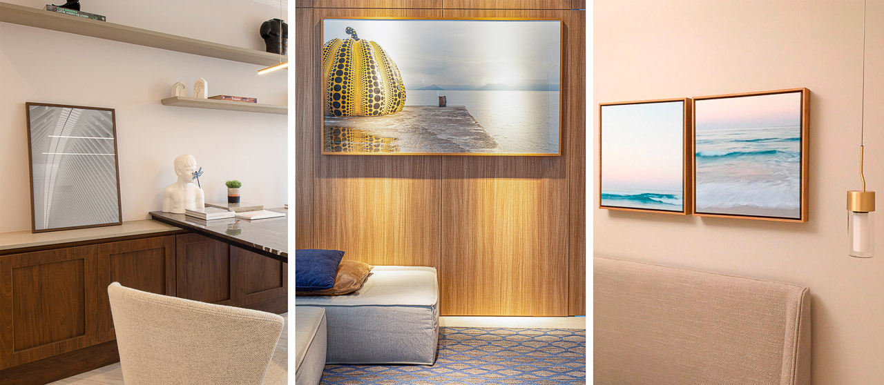 Os quadros contam histórias e a conexão afetiva é muito importante na escolha. Com a diversidade de opções fica muito mais fácil o cliente encontrar uma opção que se identifique e tenha significado. Mas além da questão emocional, eles também são parte integrante da decoração e devem estar coordenados de forma harmônica com o ambiente.